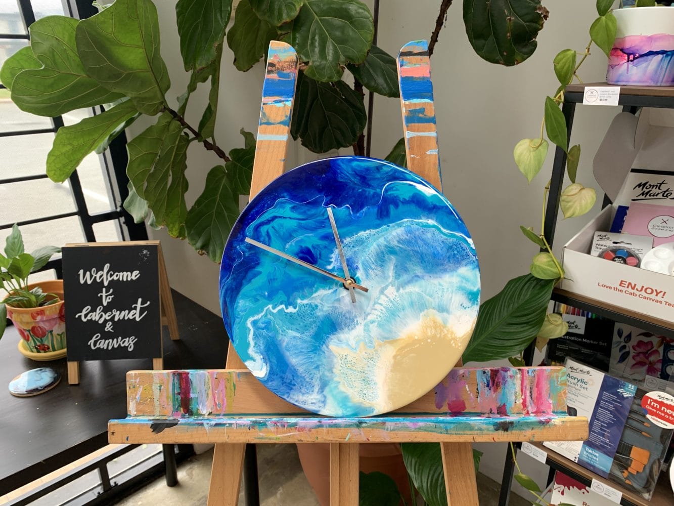 We’re excited to bring back one of our favourite resin workshops; Ocean Clocks! This is a step up from our ocean boards class, so it is helpful if you have done this class, but is not essential. We will be working on round wooden boards to create your own ocean inspired clocks, including hands that tick! Makes a great Mothers Day gift. Just sayin’…