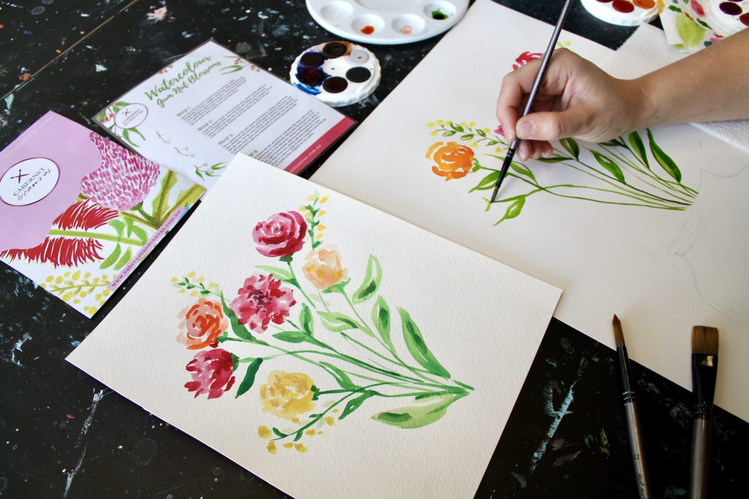 Welcome to Cabernet & Canvas, Perth’s original hub of creative workshops. Enrol now and experience one of our famous Paint & Sip classes where we will teach you step-by-step how to create beautiful florals using watercolour paint.